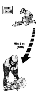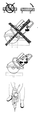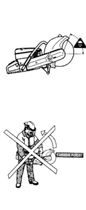 l 避免在不利條件下鋸軌,如:濃霧、大雨、強(qiáng)風(fēng)或極冷的天氣等。在不利條件下工作易引起疲勞,甚至?xí)霈F(xiàn)危險(xiǎn)后果。 l 若現(xiàn)場(chǎng)未準(zhǔn)備就緒,或站立未穩(wěn),請(qǐng)勿開(kāi)始工作。檢查周圍有無(wú)雜物,確保鋸軌過(guò)程中不會(huì)有任何雜物意外落下或飛起而造成傷害。斜坡地段工作時(shí),更要加倍注意。 l 在鋸片旋轉(zhuǎn)狀態(tài)下,要隨時(shí)注意,不要讓衣服或身體的某一部分接觸鋸片。 l 發(fā)動(dòng)機(jī)啟動(dòng)后,請(qǐng)保持您的位置遠(yuǎn)離鋸片。 l 啟動(dòng)前,務(wù)必確保所有安保裝置都已安牢。 l 為保安全,請(qǐng)務(wù)必確保工作現(xiàn)場(chǎng)照明充足。 l 對(duì)操作者而言,有些工作位是強(qiáng)制要求的。 l 檢查周圍情況,確保沒(méi)有任何電線電纜橫穿鋸軌區(qū)域。