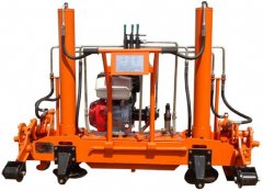 該機結(jié)構(gòu)合理,多路換向閥內(nèi)設(shè)置卸荷閥,當液壓系統(tǒng)出現(xiàn)故障時,可隨時卸荷,確保機具安全使用。軌鉤張合和機架的升降聯(lián)動,兩者操作合一,兩個動作同時完成,消除誤操作在軌鉤未張開時,提升機架造成機具損壞。軌鉤為重鉗式結(jié)構(gòu),依靠軌鉤的重力可自動勾住鋼軌,操作簡便,性能可靠,安全性能好。